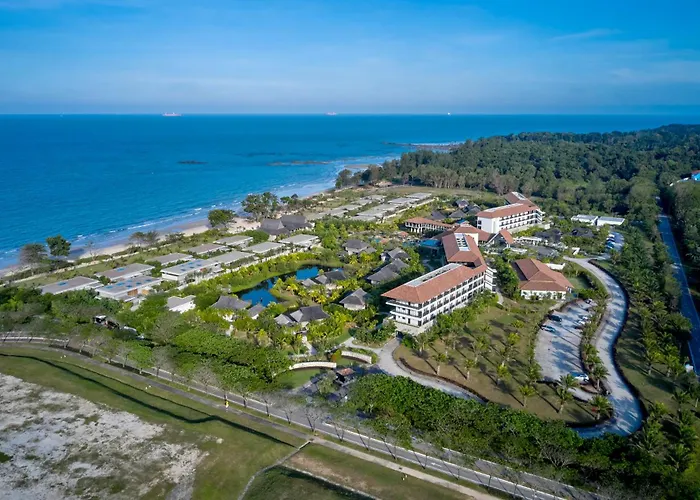 Anantara Desaru Coast Resort & Villas, a 5-star hotel with an 8.8/10 Booking.com rating, offers luxury accommodations nestled in lush tropical gardens with beachfront access. The resort features two swimming pools, a water sports center, a well-equipped gym, a cinema, and an onsite spa. Guests will have dining options including two restaurants and four bars serving authentic Thai and Malaysian cuisine.
