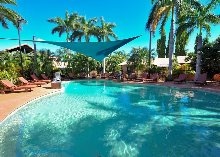 Bali Hai Resort & Spa offers 4-star self-contained villas in Broome with unique outdoor Mandi bathrooms and private courtyards. The resort features two swimming pools and a spa that provides a range of health and beauty treatments inspired by Bali. With a rating of 8.7 on Booking.com, this Broome hotel is located near the famous Cable Beach.