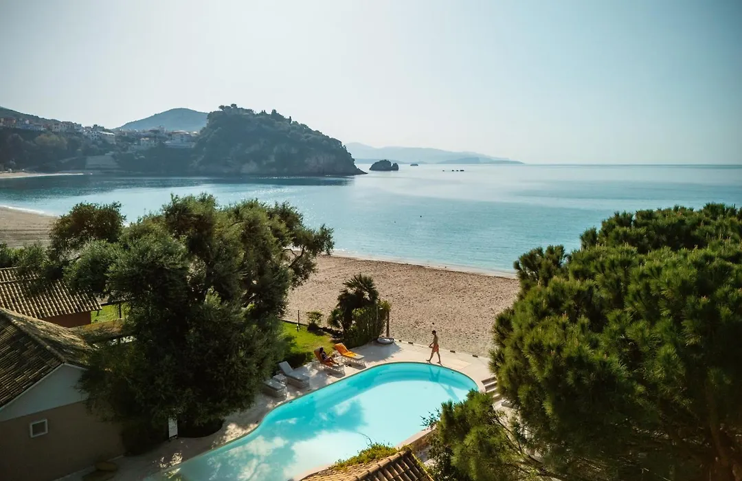Parga Beach Resort, a 5-star beach hotel rated 9.1/10 on Booking.com, offers luxurious accommodations and extensive amenities including seven swimming pools, a wellness center, and three restaurants. Guests can relax on the award-winning Valtos Beach, just steps away from the resort.