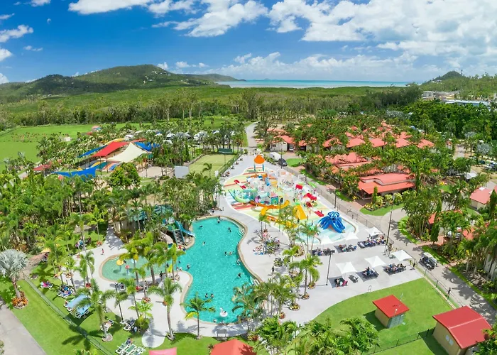 BIG4 Adventure Whitsunday Resort offers family-friendly accommodations and a wide variety of on-site activities. This 4-star Airlie Beach hotel features a vast waterpark, mini golf, and access to an animal park for children. The resort is part of Queensland's top-rated holiday parks, boasting a Booking.com rating of 9.2/10.