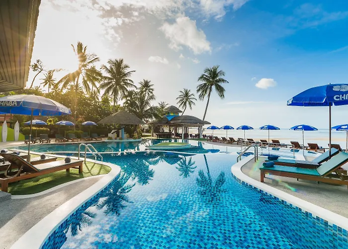 Nestled in the northern cove of Chaweng Beach, the newly refurbished Chaba Cabana Beach Resort offers a peaceful beach escape with a mix of modern design and rustic charm. This 4-star hotel features an ocean swimming pool, multiple dining options, and spacious accommodations, making it suitable for families and couples alike.