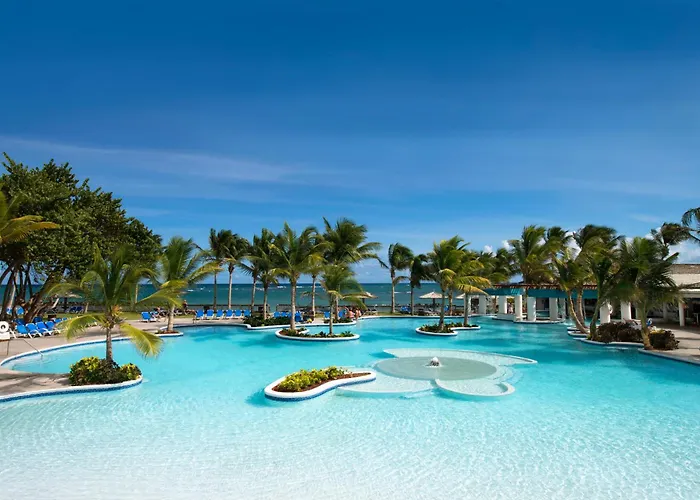 Dining options include nine restaurants serving American cuisine at Coconut Walk Marketplace and Caribbean dishes at Calabash. Guests can enjoy breakfast featuring multiple stations cooking crepes, omelettes, and more on demand, alongside lunch options at the Jerk Hut.