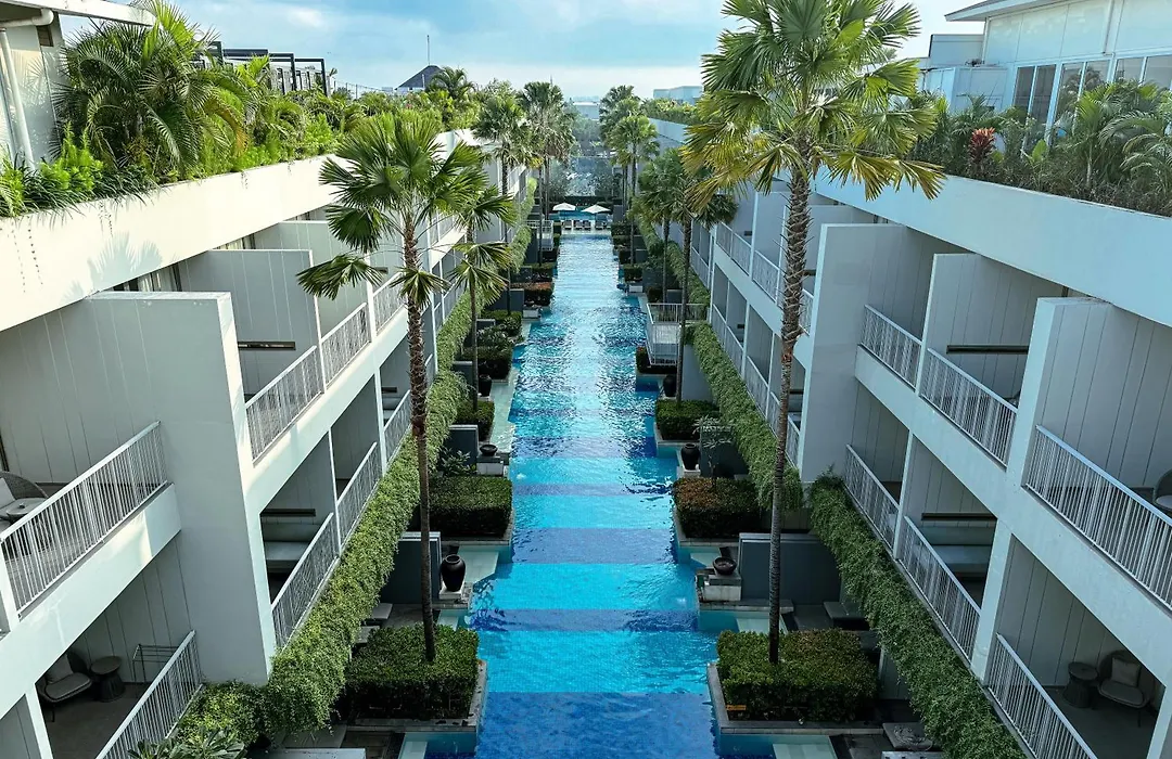 Kanvaz Village Resort Seminyak is a 4-star lifestyle boutique hotel featuring a 110-meter tropical lagoon pool and wellness facilities. With a rating of 9.4/10 on Booking.com, it offers a unique culinary experience at Kanvaz Patisserie by Vincent Nigita and a vibrant rooftop space with stunning views.