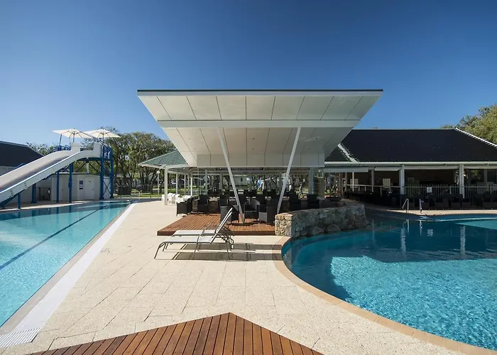 Mandalay Holiday Resort And Tourist Park offers a family-friendly beach resort experience with diverse accommodation including luxury two-storey villas and unique glamping tents. This 4-star Busselton hotel features amenities such as three pools, a sauna, and barbecue facilities, catering to a variety of guests.
