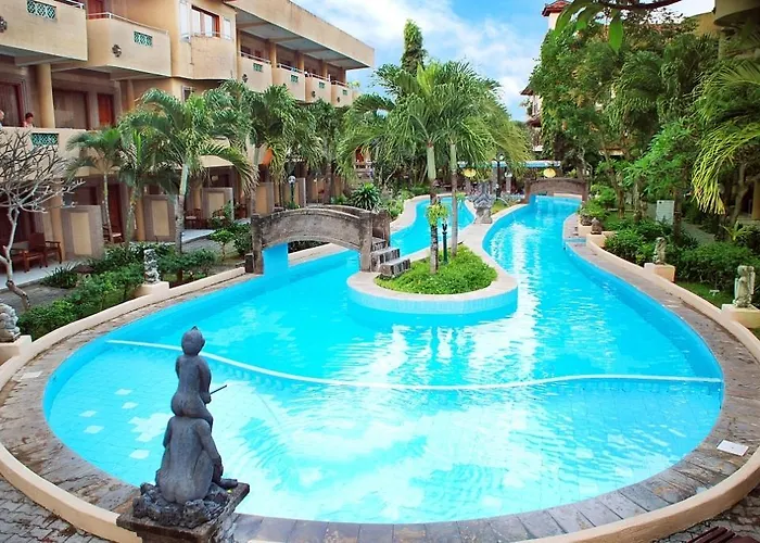 Melasti Beach Resort & Spa Legian, a 3-star hotel, offers two large swimming pools, including a children's pool and plunge pool, catering to family stays. This resort features amenities such as 24-hour room service and free WiFi, along with a Balinese dining experience.