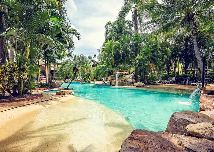 Mercure Darwin Airport Resort offers resort-style accommodation amidst lush tropical gardens. This 4-star hotel features a large tropical pool and the newly renovated Cossies Poolside Bar and Bistro. It provides various room options, making it suitable for both holidaymakers and business guests.