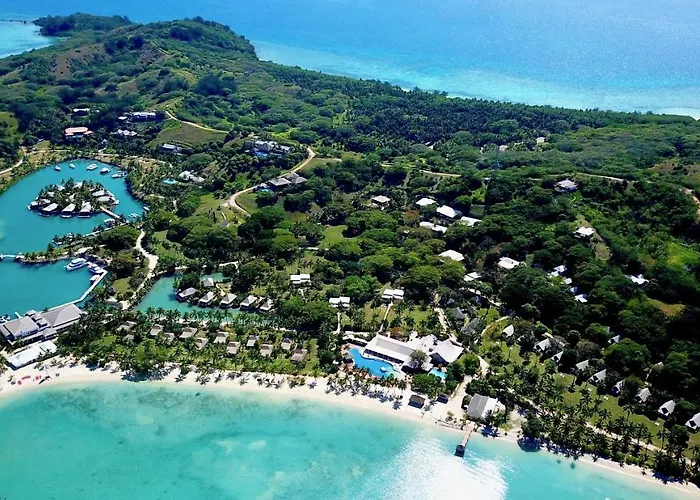 Musket Cove Island Resort offers a secluded island hideaway featuring 55 air-conditioned bures and villas with direct lagoon or beachfront access. This 4-star resort includes a day spa, multiple dining options, and a marina, providing guests with a unique Fijian experience.