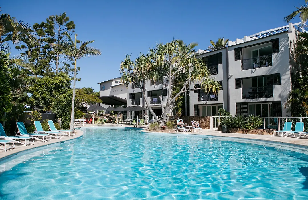 Noosa Blue Resort, a 5-star establishment with an 8.4/10 rating on Booking.com, offers luxurious self-contained accommodation amidst serene surroundings. This Noosa Heads hotel features three heated swimming pools, a wellness center, and a café, making it suitable for both relaxation and adventure.