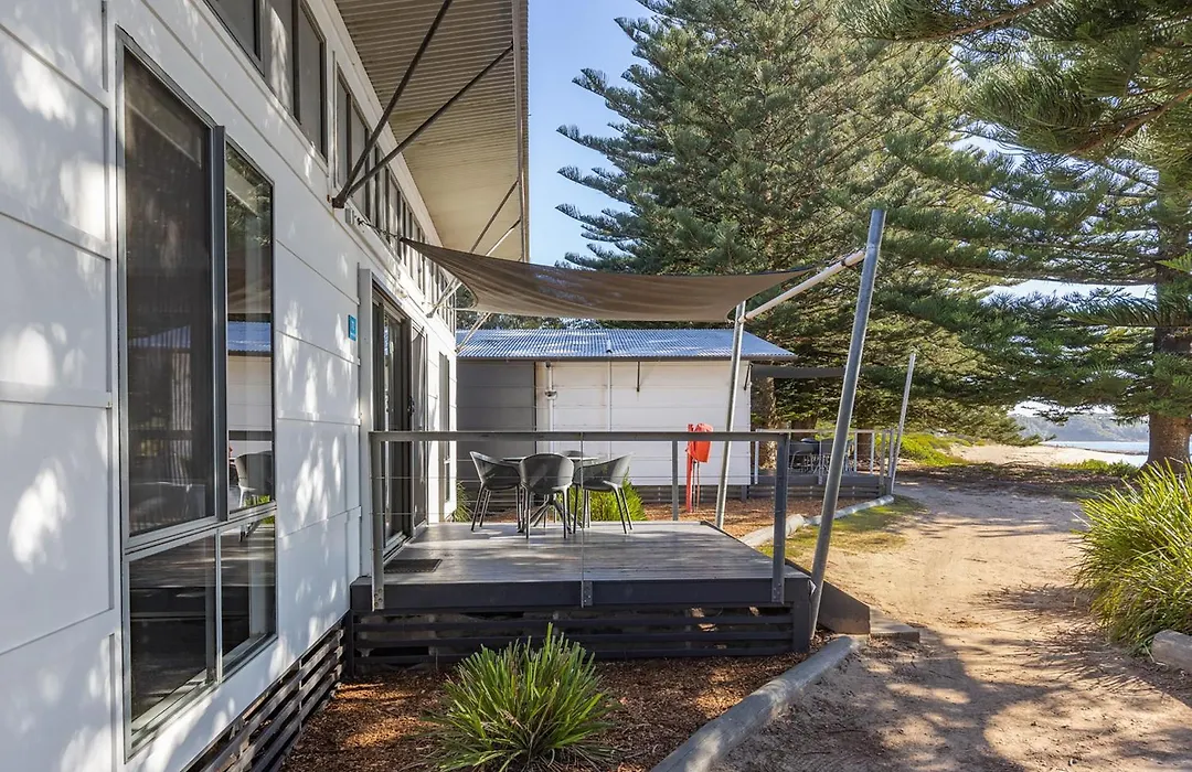 Rooms at Nrma Murramarang Beachfront Holiday Resort include beachfront cabins, villas, and fully-equipped glamping tents. Each accommodation type is air-conditioned and features kitchens and outdoor dining areas. For minimalists, powered and unpowered sites are available for camping and caravanning enthusiasts.