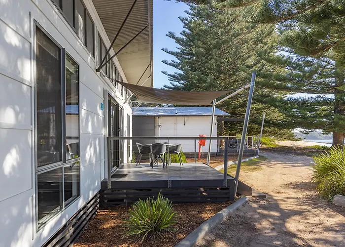 Nrma Murramarang Beachfront Holiday Resort features direct beach access, outdoor swimming pools, and a range of family-friendly accommodations. This 4-star Durras hotel offers self-contained group lodging options, glamping tents, and powered sites for caravans. Guests can immerse themselves in nature with nearby Murramarang National Park and enjoy local cuisine at the on-site Beach Bistro.