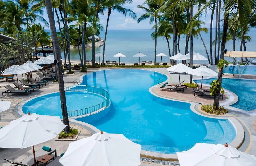 Outrigger Koh Samui Beach Resort - Sha Extra Plus is a 5-star beachfront hotel featuring elegant colonial-style rooms and multiple pools. The resort offers diverse dining options, fitness facilities, and a variety of activities, making it a family-friendly retreat on Lamai Beach (Koh Samui).