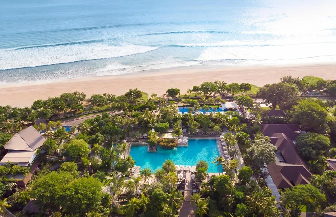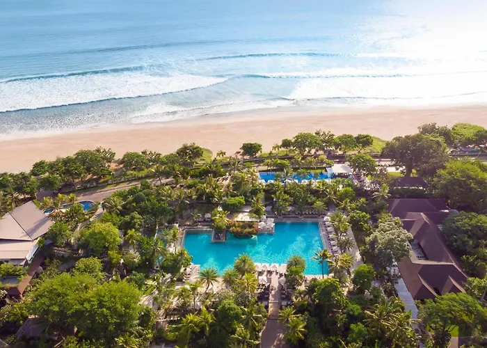 Padma Resort Legian offers a prime beachfront experience with a 9.4/10 rating, providing a blend of luxury and Balinese hospitality. The five-star resort features beautifully manicured gardens and world-class amenities.