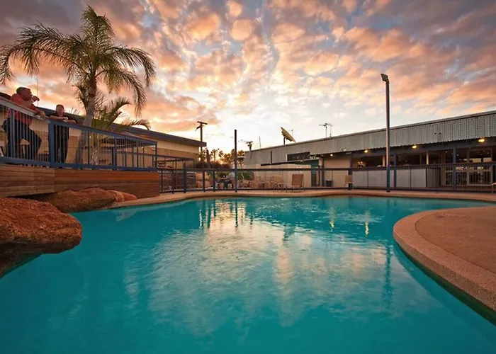 Potshot Hotel Resort, a 3-star Exmouth hotel, features modern air-conditioned rooms and diverse dining options. Key amenities include an outdoor pool, a bar, and a bottle shop open daily.