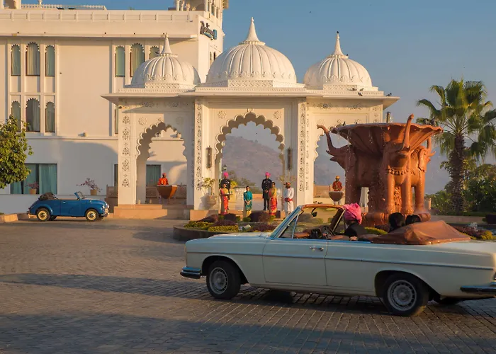Radisson Blu Udaipur Palace Resort & Spa offers a luxurious stay with panoramic views overlooking Fateh Sagar Lake. This 5-star hotel features a variety of amenities including five on-site restaurants and bars, multiple swimming pools, and a large spa facility.