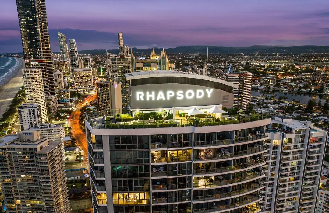 Rhapsody Resort - Official is a 5-star Gold Coast hotel offering stylish, self-contained accommodations in Surfers Paradise. The resort features a heated outdoor swimming pool, rooftop terrace with panoramic views, and a beachside café with seasonal dishes. Guests can choose from spacious studio, one, and two-bedroom apartments equipped with modern amenities.