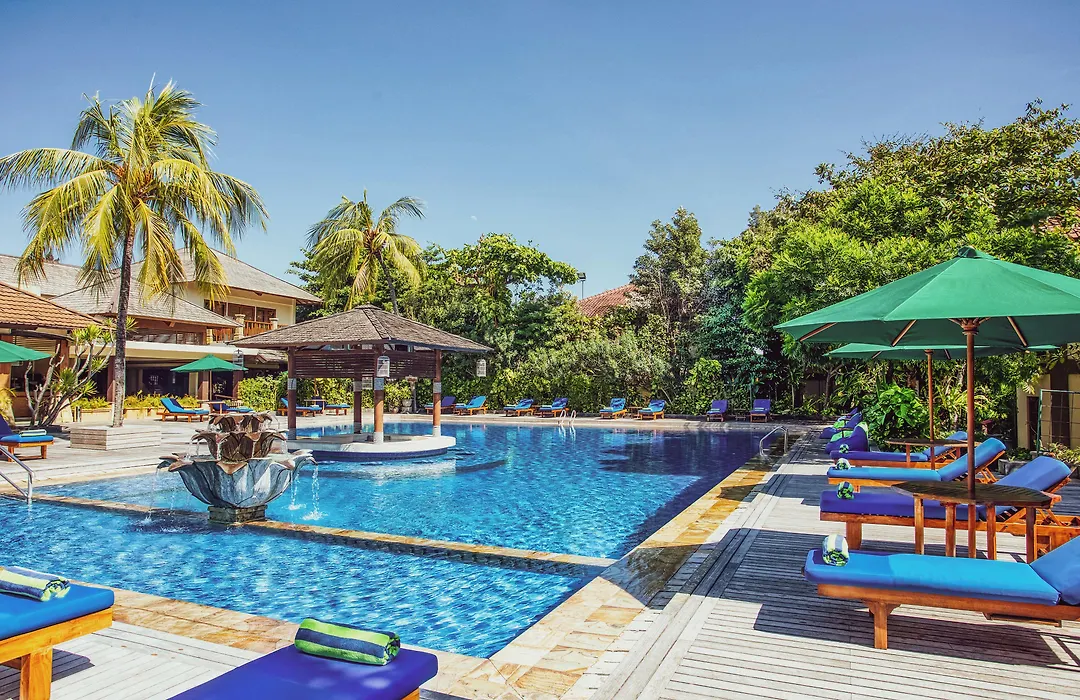 Risata Bali Resort & Spa is a 4-star hotel featuring 137 rooms and suites set within a tropical landscaped garden. Amenities include a large outdoor pool, fitness center, and Sukha Spa, which offers a variety of treatments. The property is well-placed for access to nearby shopping and attractions.