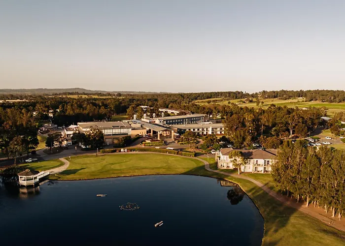 Rydges Resort Hunter Valley features accommodations in a picturesque setting with 4-star amenities, including two pools, a water park, and contemporary meeting spaces. The hotel enjoys a high rating of 8.3/10 on Booking.com and offers a range of dining facilities and leisure options.