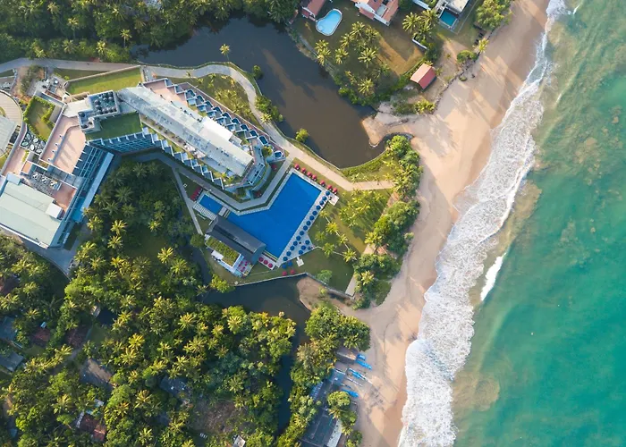 Sheraton Kosgoda Turtle Beach Resort is a 5-star hotel featuring a beachfront location and an expansive swimming pool. Guests can experience a state-of-the-art fitness center and multiple on-site dining options in this hotel located in the town known for its sea turtle conservation project. It has an overall rating of 8.4/10 on Booking.com.