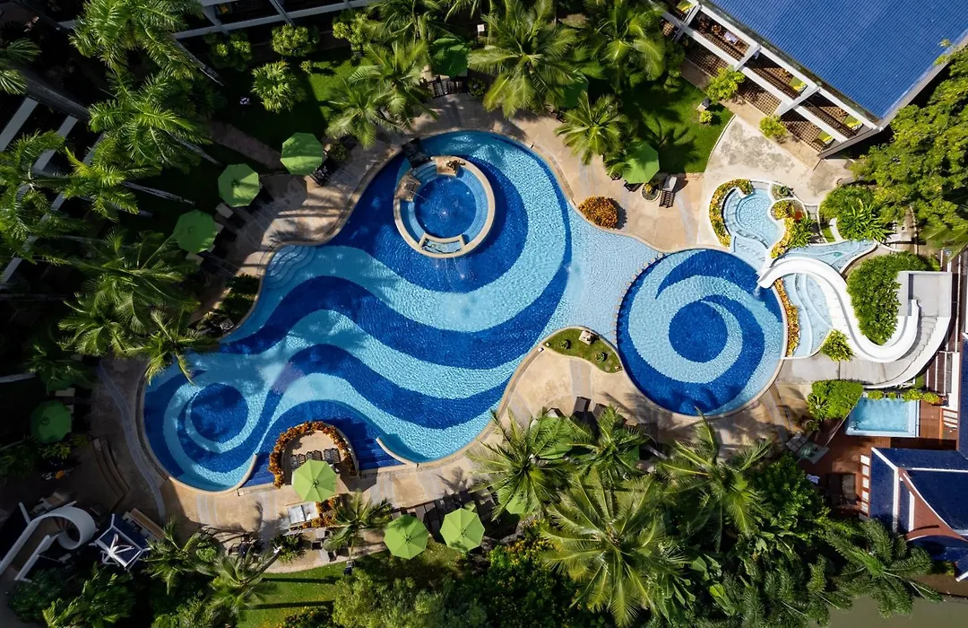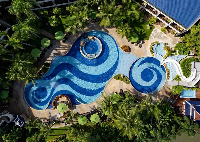 Siam Bayshore Resort Pattaya, a 5-star hotel with an 8.0/10 rating, features a beachside terrace and a luxurious spa amid lush gardens. Guests can enjoy modern amenities combined with traditional Thai hospitality across its expansive property.