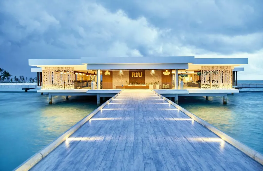 Riu Palace Maldivas is a 5-star all-inclusive resort offering 24-hour service, free Wi-Fi, and a wide range of relaxation and entertainment options. The hotel features a private beach area and a variety of dining options, including buffet and à la carte restaurants. Unique amenities include an outdoor swimming pool with a swim-up bar and wellness facilities such as a sauna and hot tub.