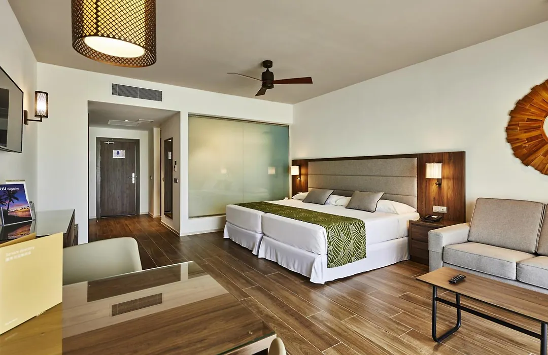Riu Palace Maldivas boasts wellness facilities including a sauna, a hot tub, and an outdoor swimming pool offering sea views and a swim-up bar. Leisure activities available include access to a private beach, snorkeling, and canoeing, while the kids can enjoy the RiuLand kids' club.