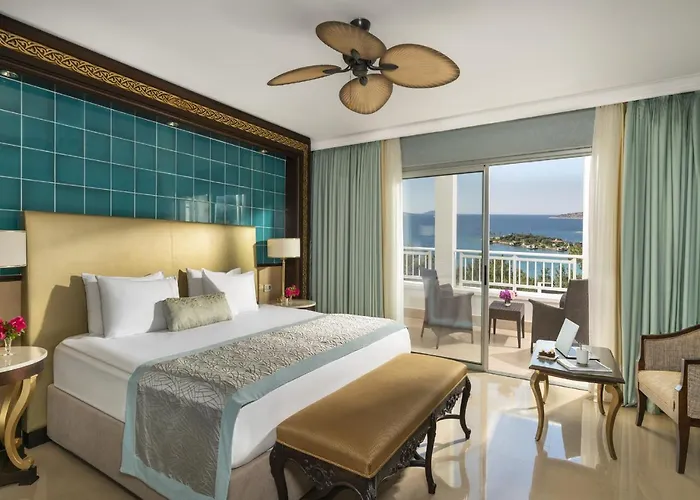 Rixos Premium Bodrum, a 5-star Torba hotel with an 8.9/10 rating on Booking.com, features luxurious accommodations and a private beach area. Guests can enjoy an extensive spa and several dining options within a beautiful natural setting.