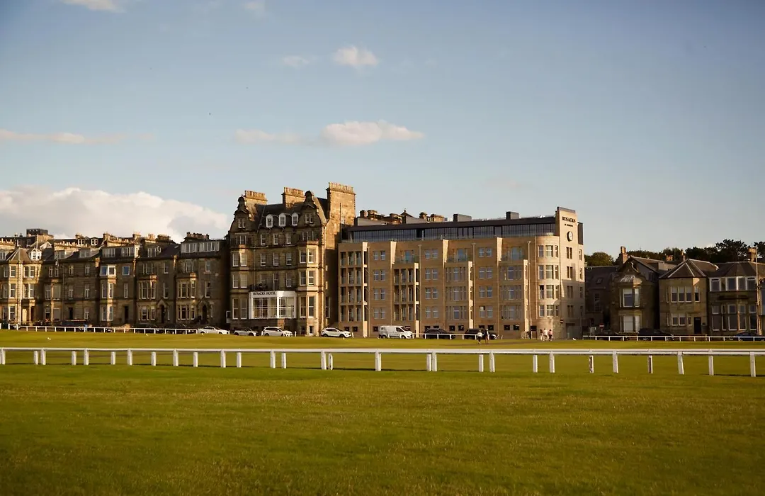 Rusacks St Andrews, a 5-star hotel with a Booking.com rating of 9.1/10, offers a luxurious atmosphere steeped in golfing history. Located steps from the Old Course, it features modern amenities including a rooftop bar and acclaimed dining options. The hotel welcomes pets for an additional fee.