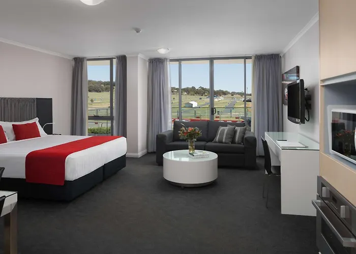 Rydges Mount Panorama Bathurst offers contemporary accommodation with views of the Mount Panorama racetrack and Conrod Straight. This 4-star Bathurst hotel features a restaurant, a bar, and event planning services. Guests can take advantage of a seasonal outdoor pool and a fitness center.