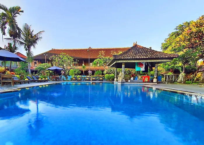 Satriya Cottages, a 3-star hotel rated 8.2/10 on Booking.com, features Balinese architecture and offers a range of amenities including two swimming pools with a swim-up bar, and a restaurant serving local and international cuisine. The hotel is located in the lively Kuta area, a hub known for its beach scene and culinary options.