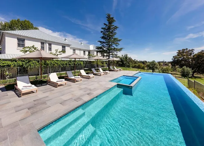 Spicers Guesthouse offers modern elegance with relaxed luxury in the Hunter Valley. This five-star hotel features an outdoor swimming pool, full-service spa, and multiple event spaces. Guests can enjoy Italian cuisine at the on-site éRemo Restaurant, complemented by local Hunter Valley wines.