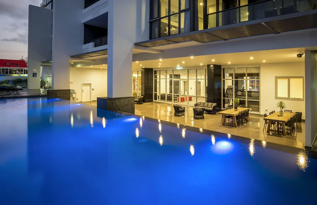 Synergy Broadbeach - Official offers contemporary 4-star accommodations with stunning ocean views and a range of amenities. This Gold Coast hotel features spacious apartments suitable for leisure and corporate travelers, equipped with modern facilities. Notable amenities include an outdoor heated swimming pool and a BBQ area.