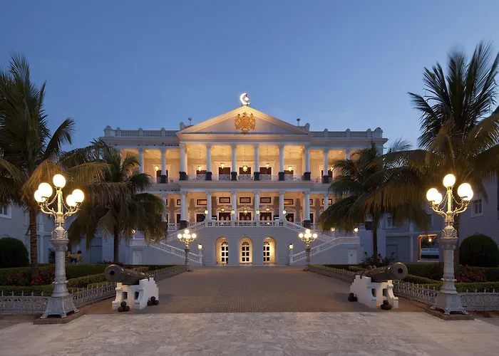 Taj Falaknuma Palace, a 5-star historic hotel, features 60 uniquely distinct accommodations set in a grand palace once owned by Hyderabad's Nizam. Guests can enjoy amenities like a spa, landscaped pool, and four on-site restaurants including Adaa, specializing in Hyderabadi cuisine.