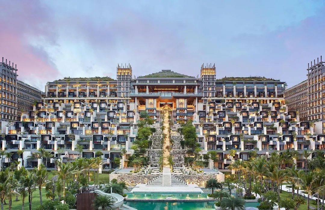 Dining options include Koral, the first aquarium restaurant in Bali, offering a unique culinary experience. Other restaurants include Izakaya by OKU, showcasing Japanese cuisine, and Bai Yun, an authentic hot pot destination. The resort also hosts a sophisticated rooftop bar and multiple venues for refreshing beverages.
