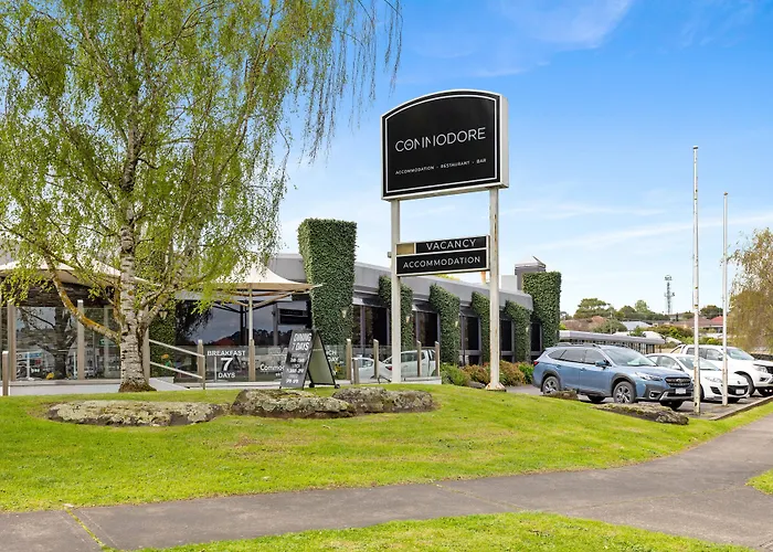 The Commodore, a 4-star Mount Gambier hotel rated 8.0/10 on Booking.com, features a range of accommodations, including spacious suites and self-contained houses. Notable amenities include a restaurant with views of Frew Park and a bar offering over 100 types of gin.