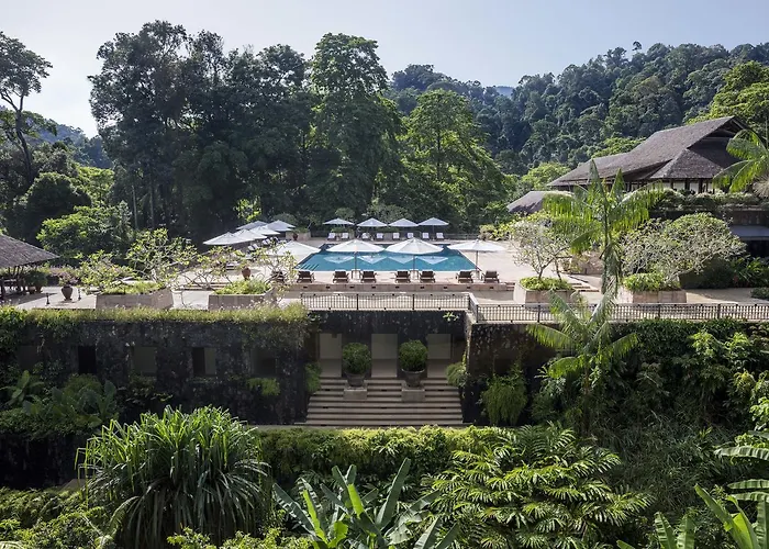 The Datai Langkawi, a 5-star Teluk Datai hotel with a 9.8/10 rating on Booking.com, offers luxurious accommodations surrounded by a pristine rainforest. Guests can enjoy a grand pool complex, exceptional dining options, and immersive spa treatments.