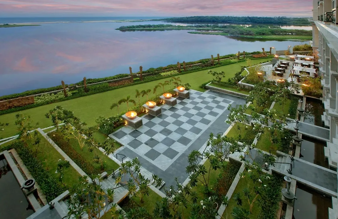 Set on 2 hectares overlooking the Bay of Bengal, The Leela Palace Chennai is a 5-star seafront retreat that blends classical architecture with contemporary luxury. Guests can enjoy a variety of amenities, including a grand pool complex and multiple award-winning restaurants, while experiencing the rich cultural heritage of the area.