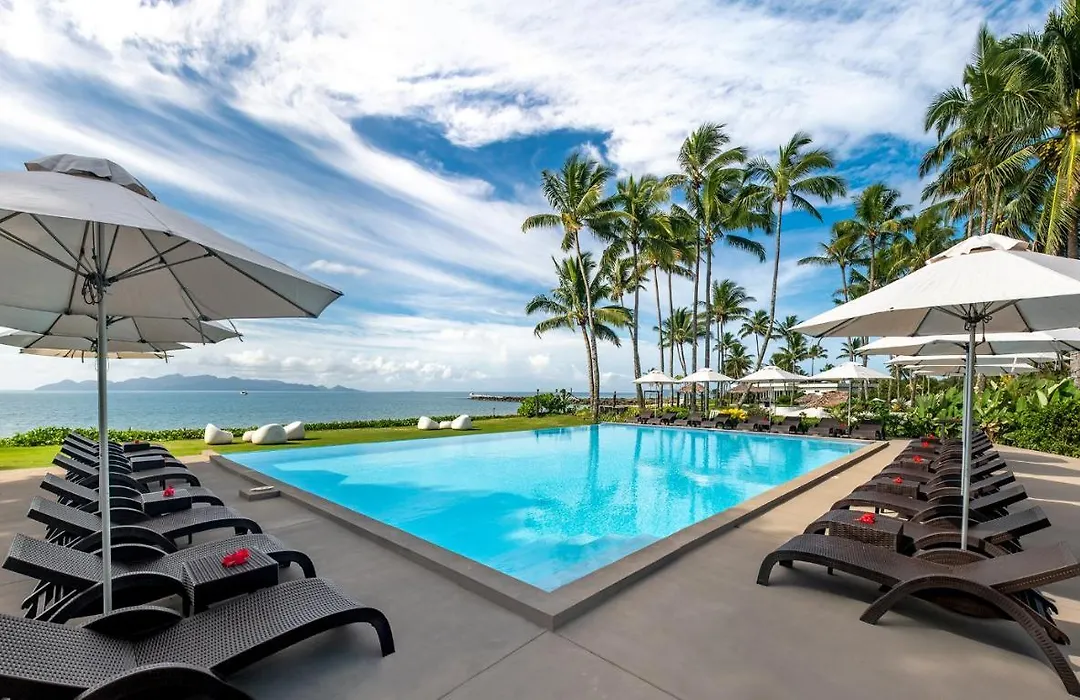 The Pearl South Pacific Resort, Spa & Golf Course offers chic accommodation and exquisite cuisine amidst lush tropical landscapes. This 4-star Pacific Harbour hotel features an 18-hole golf course, a swimming pool with a swim-up bar, and a state-of-the-art waterside spa. Guests can engage in world-famous shark diving and white water rafting for an adventurous stay.