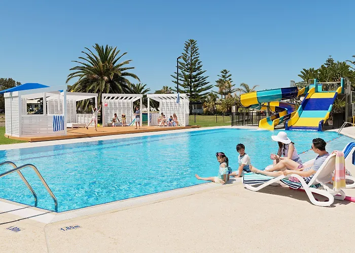 The Retreat West Beach Parks offers 4-star accommodations with direct beach access and comprehensive family-friendly amenities. Guests can enjoy heated swimming pools, water slides, and recreational facilities, all set within a lush natural environment. This Adelaide hotel features 91 deluxe shacks, ideal for couples and families looking for a relaxing getaway.